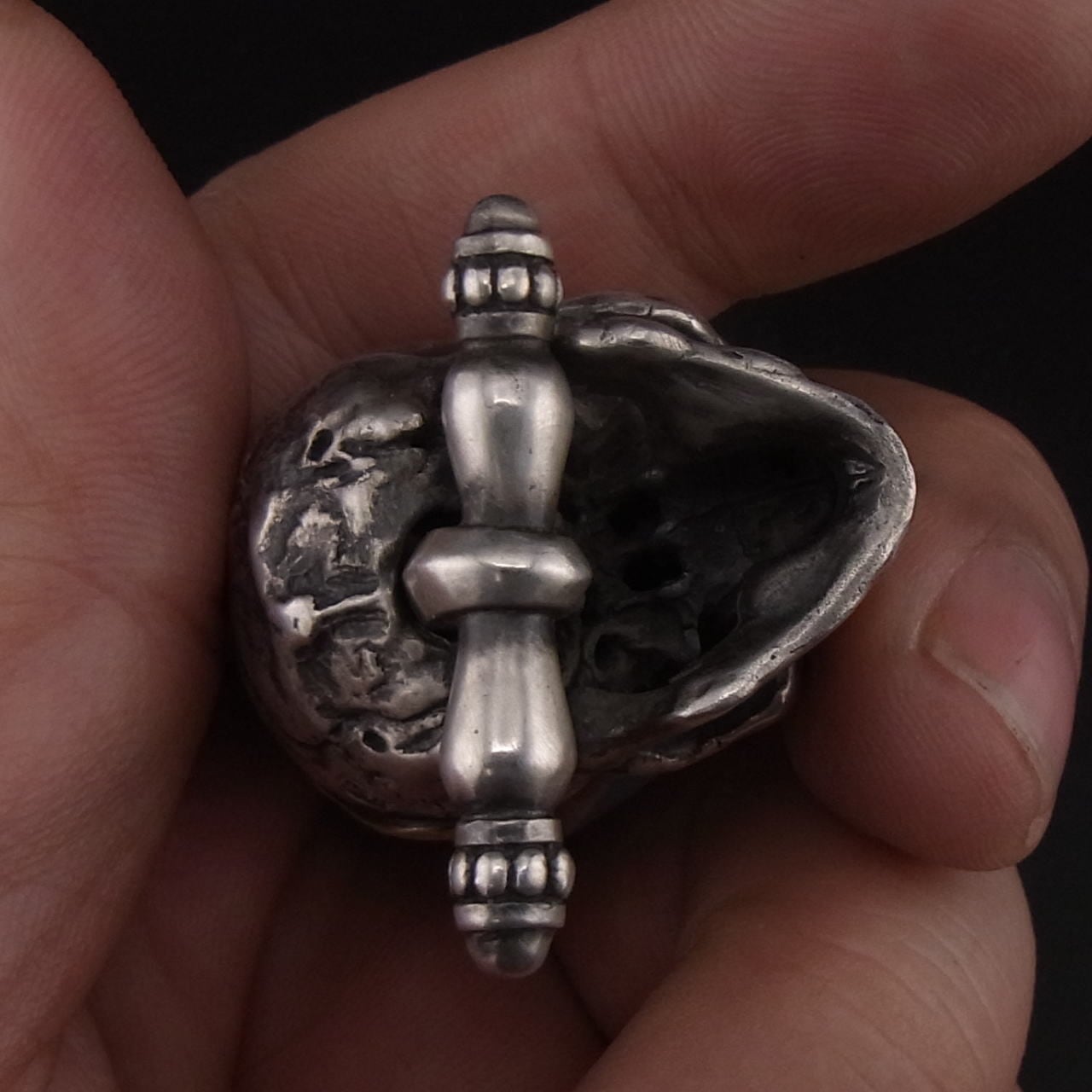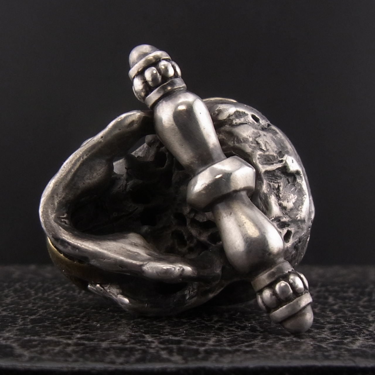 上部のマルカンから下部のTバーまでをスカル内部を貫通させて通す構造となっていますので動きのある作りとなっております。